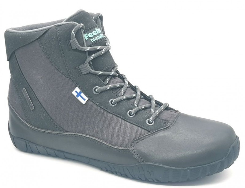 Vettä hylkivä. Mikrokuitu/Canvas päällinen. Pohjassa on kovempaa kumia kannan ja päkiän alla, pehmeämpää muualla. Tämä on yksi maailman joustavimmista kenkien ulkopohjista. Kosteisiin olohin suosittelemme kenkien kyllästämistä esim. mehiläisvahalla. Kylmiin oloihin suosittelemme Feelmax-lämpöpohjallisia, jotka sopivat täydellisesti kengän lestiin.