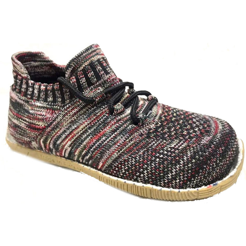 Erittäin kevyet, hengittävät kaksikerroksiset yhden kappaleen päälliset, valmistettu uudella mullistavalla 3D-neulostekniikalla. Kenkä on erittäin joustava ja täysin saumaton. Helppo pukea ja riisua. Valmistettu Suomessa. Koot EUR 24-34. Oikean koon valitsemiseksi mitatkaa jalkojen koko. Uudella NatuRun™ Minimo 2.5 mm kaksitiheyksisellä Ecorubber™ kierrätetyllä ulkopohjalla. Tämä ulkopohja on sulatettu päälliseen, mikä luo erittäin joustavan ja vahvan sidoksen. Leveä kärkiosa. 100% vegaaninen.